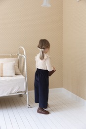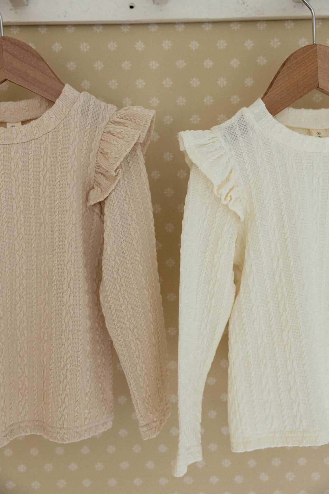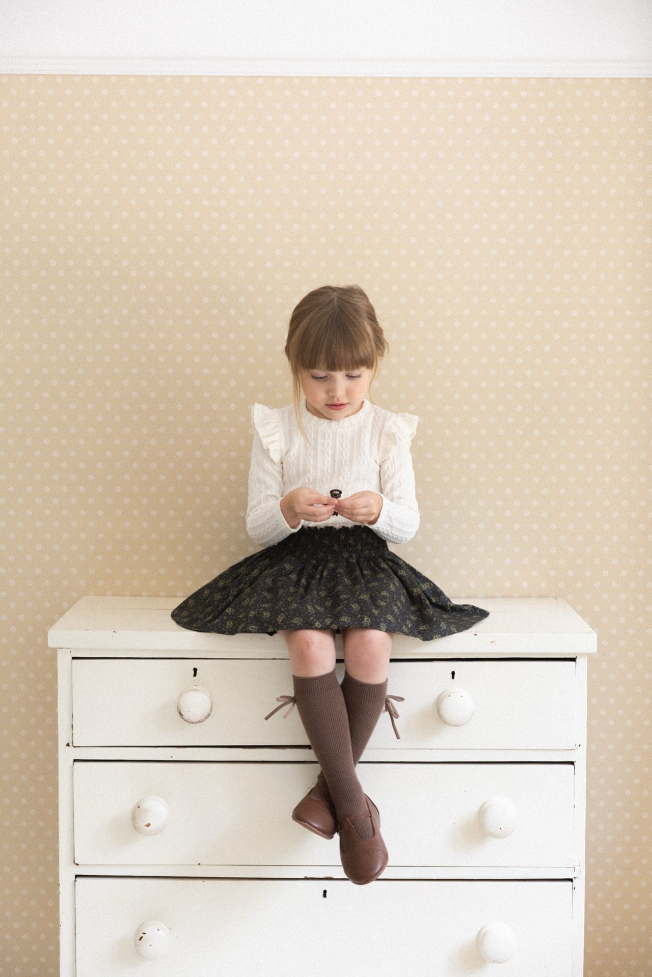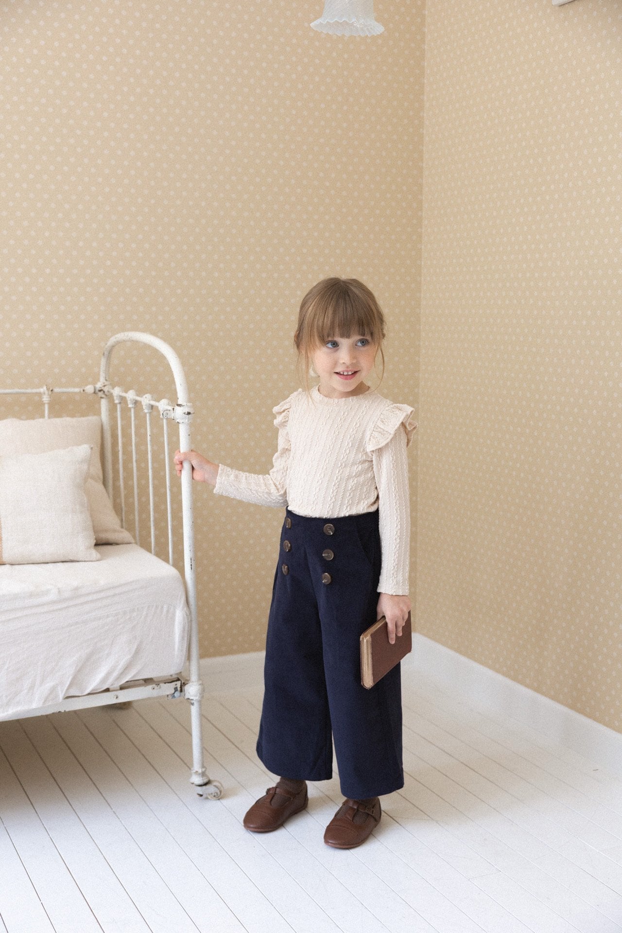 肩まわりのやわらかなデザインが女の子らしさを引き立ててくれます。