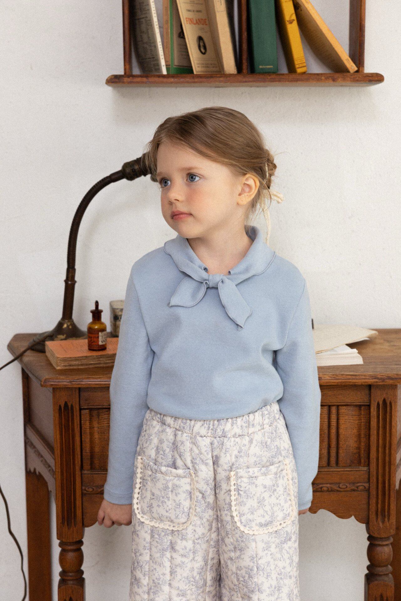 淡いライトブルーのフラワープリントがやさしく広がる、