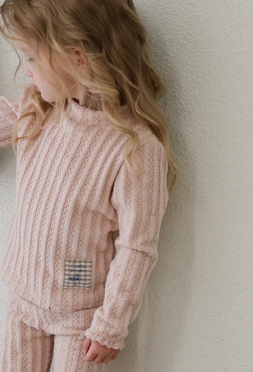やわらかなピンクカラーに、繊細なリブ編みが表情を添えるカミーユTシャツ。